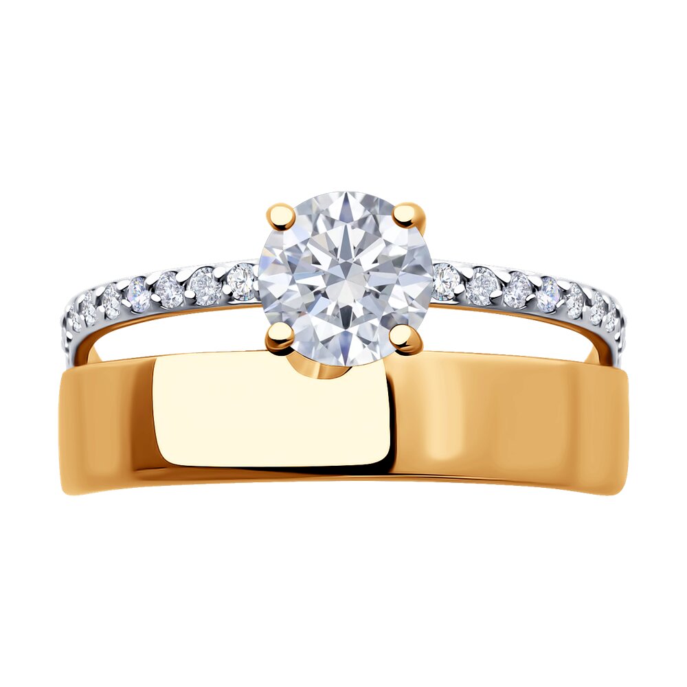 Кольцо оригинального дизайна из красного золота 585 пробы с сияющими фианитами не оставит женщину равнодушной. Сочетание классики и современного стиля с кристальным блеском камней привлекает внимание. Украшение станет изысканным акцентом женского образа, и подчеркнет индивидуальность владелицы. Приобретайте кольцо по выгодной цене в магазинах Мир Золота.