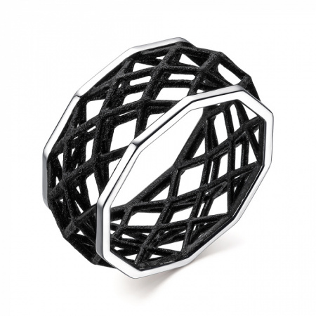 Стильное кольцо современного ювелирного дизайна с черной эмалью выполнено из родированного серебра 925 пробы. Выразительное объемное кольцо с фактурной эмалью отлично впишется в динамичные модные образы, и подчеркнет индивидуальный стиль владелицы. Приобретайте ювелирное украшение по привлекательной цене в магазинах Мир Золота.