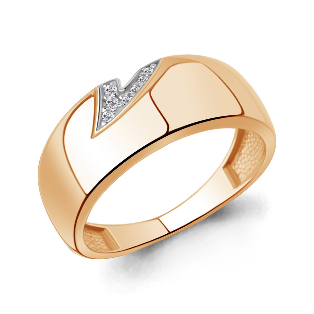 Элегантное кольцо из красного золота 585 пробы с прозрачными фианитами превосходно дополнит классические и современные образы. Украшение с кристальным сиянием камней на фоне глянцевого блеска золота станет достойным подарком, и подчеркнет безупречный вкус обладательницы. Приобретайте ювелирное украшение по выгодной цене в магазинах Мир Золота.