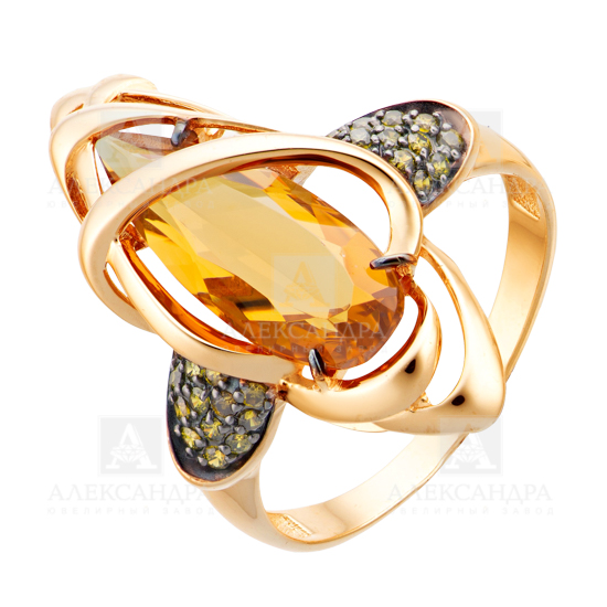 Эффектное кольцо оригинального ювелирного дизайна из красного золота 585 пробы с ситаллом топазом грушевидной формы и россыпью цветных фианитов. Объемный декор с ярким акцентом крупного ситалла в обрамлении изящных линий благородного металла привлекает внимание, и подчеркнет изысканный вкус обладательницы. Приобретайте кольцо по выгодным ценам в магазинах Мир Золота.