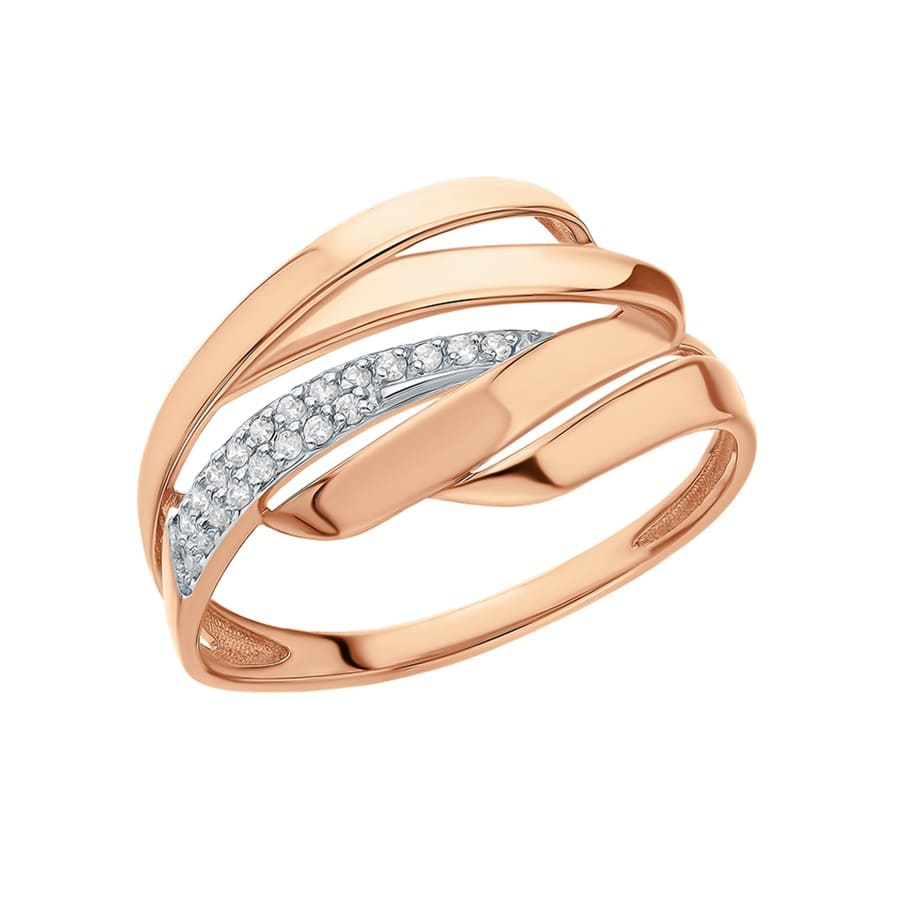 Актуальный дизайн с пересекающими линиями благородного золота и кристальным сиянием камней смотрится женственно и современно, и позволит создать завершенный образ, уместный в любой ситуации. Приобретайте кольцо для своей коллекции или в подарок по выгодным ценам в магазинах Мир Золота.