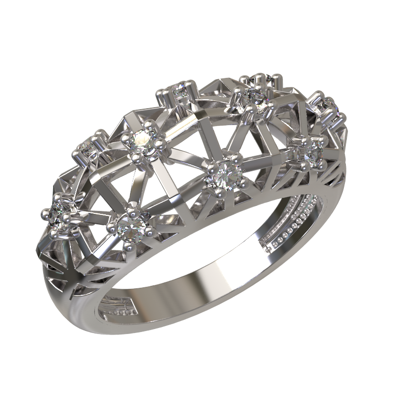 Кольцо из родированного серебра 925 пробы выполнено в оригинальном ювелирном дизайне с прозрачными фианитами. Серебряное украшение станет эффектным дополнением стильного современного образа, подчеркнув изысканный вкус и индивидуальность владелицы. Защитное покрытие родием придает изделию дополнительный блеск. Приобретайте кольцо по выгодной цене в магазинах Мир Золота.