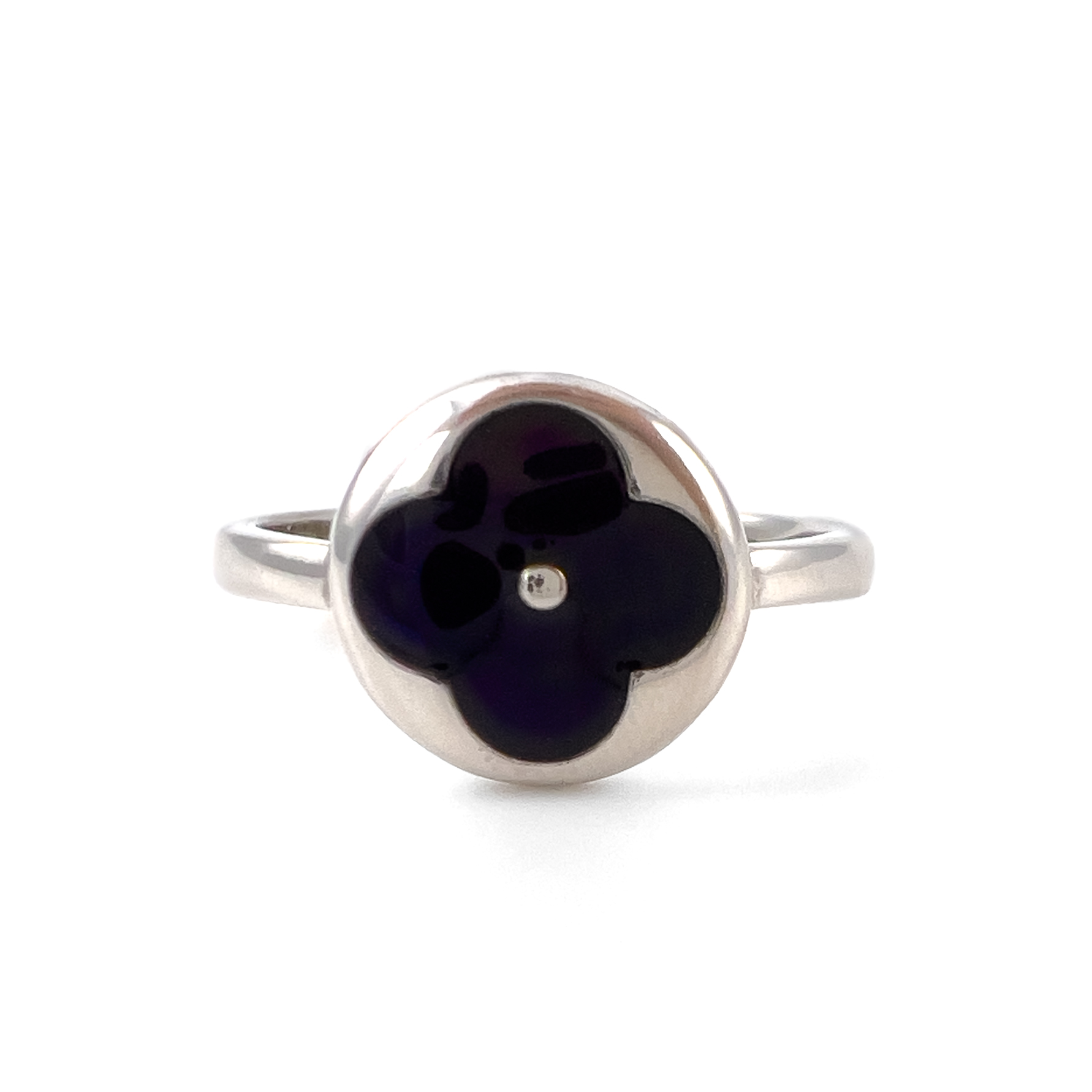 —Кольцо из серебра с эмалью и декором в форме клевера