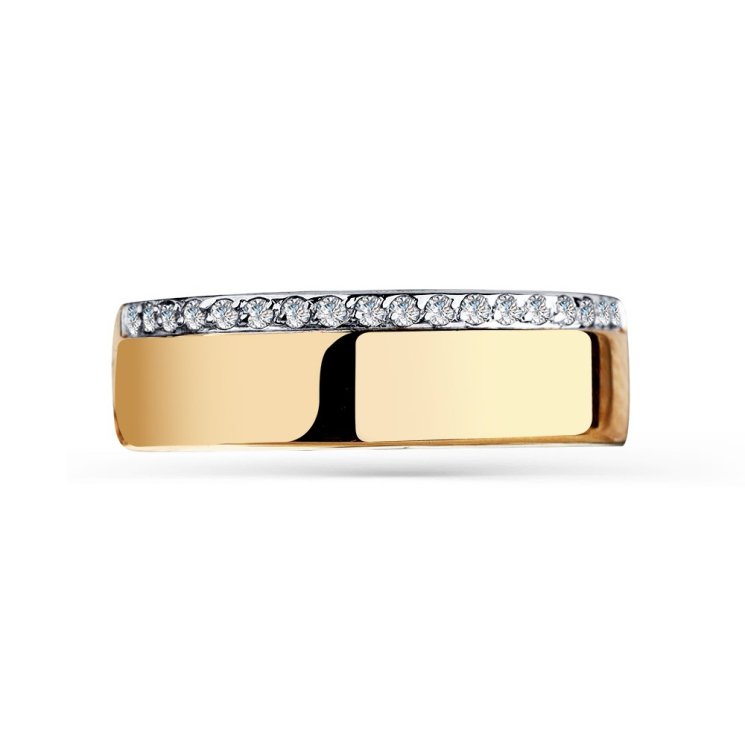 Кольцо из красного золота 585 пробы декорировано дорожкой сверкающих фианитов. Элегантный аксессуар с искристым блеском ювелирных камней станет актуальным дополнением современного образа, и подчеркнет прекрасный вкус обладательницы. Приобретайте ювелирное украшение для себя или в подарок по выгодной цене в магазинах Мир Золота.