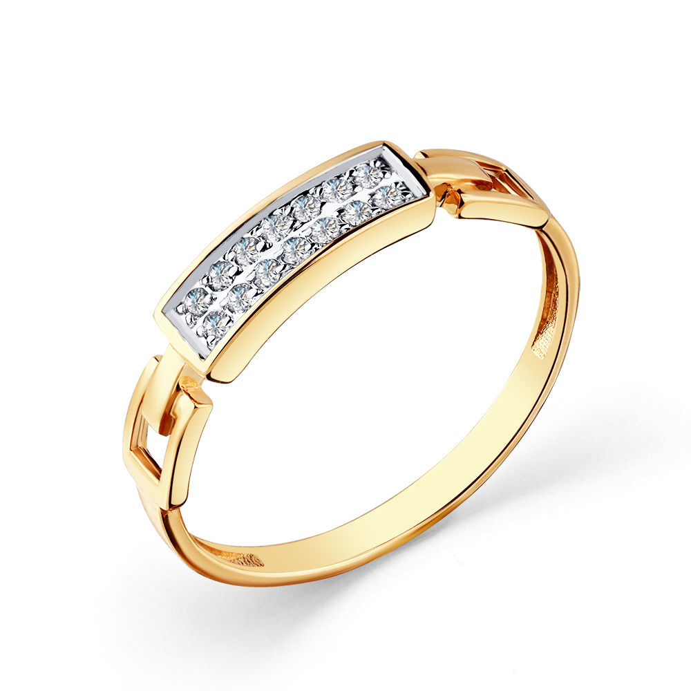 Кольцо современного ювелирного дизайна из красного золота 585 пробы украшено вставкой с дорожками сияющих фианитов. Актуальное украшение с кристальным блеском камней отлично впишется и в деловой офисный стиль, и в городские повседневные образы. Приобретайте ювелирное украшение в подарок по привлекательной цене в магазинах Мир Золота.