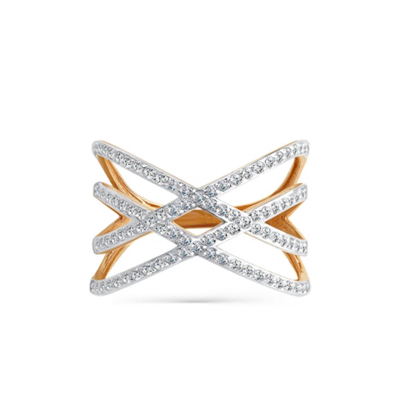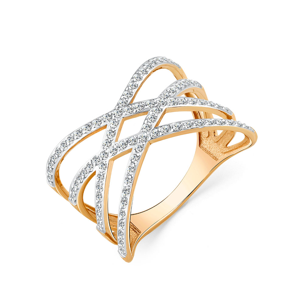 Женское кольцо из красного золота 585 пробы с дорожками сверкающих фианитов сделает привычный образ более стильным и привлекательным. Современный дизайн с пересекающими линиями благородного золота и кристальным сиянием камней подчеркнет женственность и утонченный вкус владелицы. Приобретайте кольцо для своей коллекции или в подарок по выгодным ценам в магазинах Мир Золота.