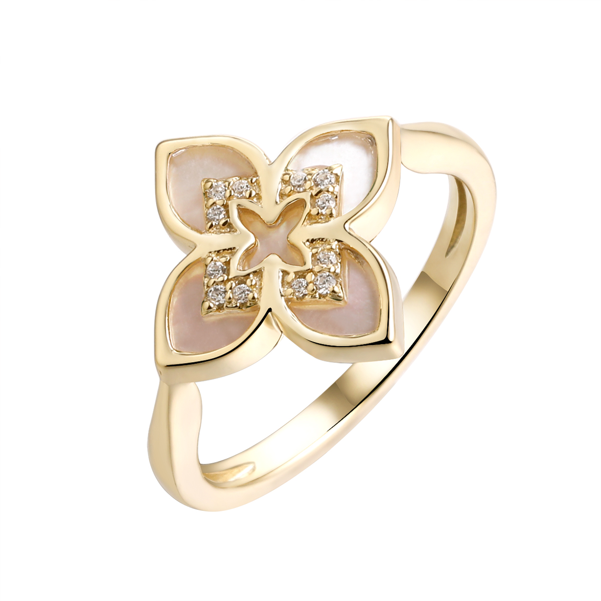 Кольцо из позолоченного серебра с перламутром и фианитами