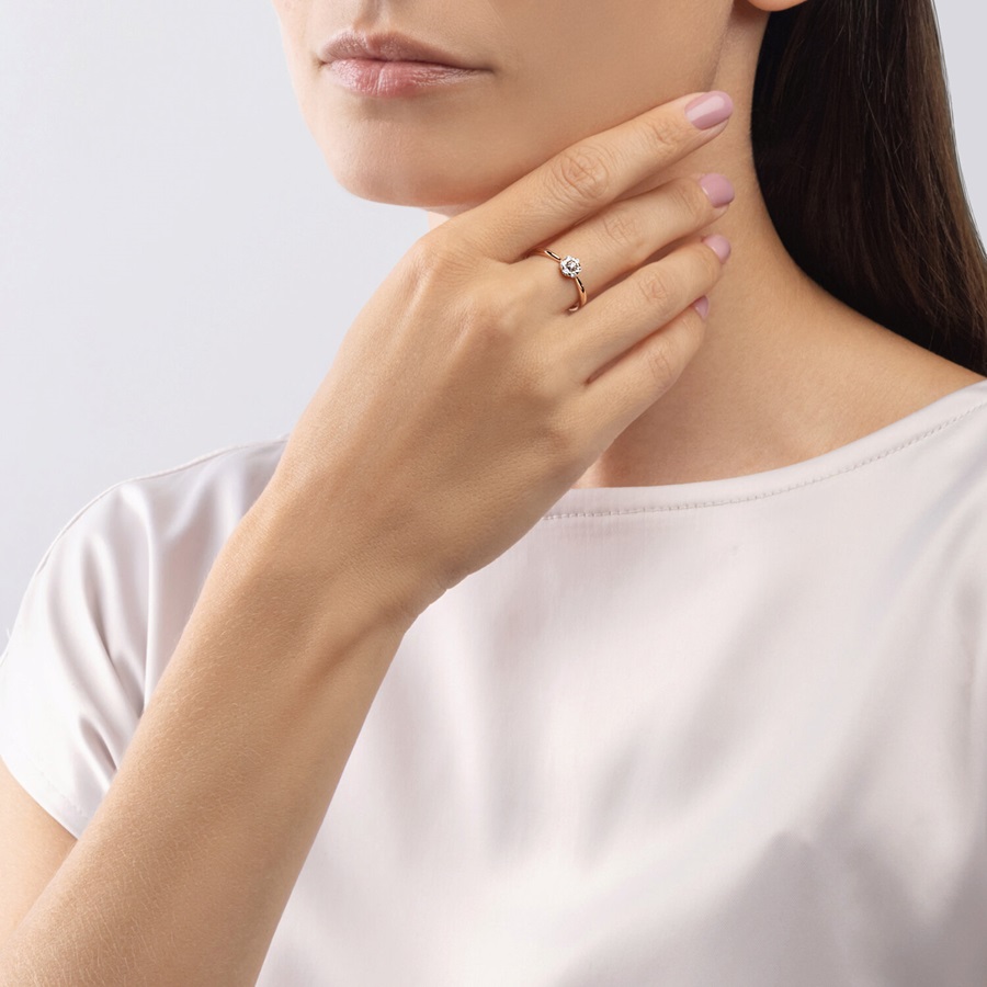 Очаровательное кольцо привлекательного дизайна из красного золота 585 пробы, декорированное вставками с сияющими фианитами, привлекает своей красотой и кристальным блеском камней. Кольцо изящно смотрится на руке, и станет прекрасным выбором для подарка. Приобретайте кольцо с фианитами по выгодной цене в магазинах Мир Золота.