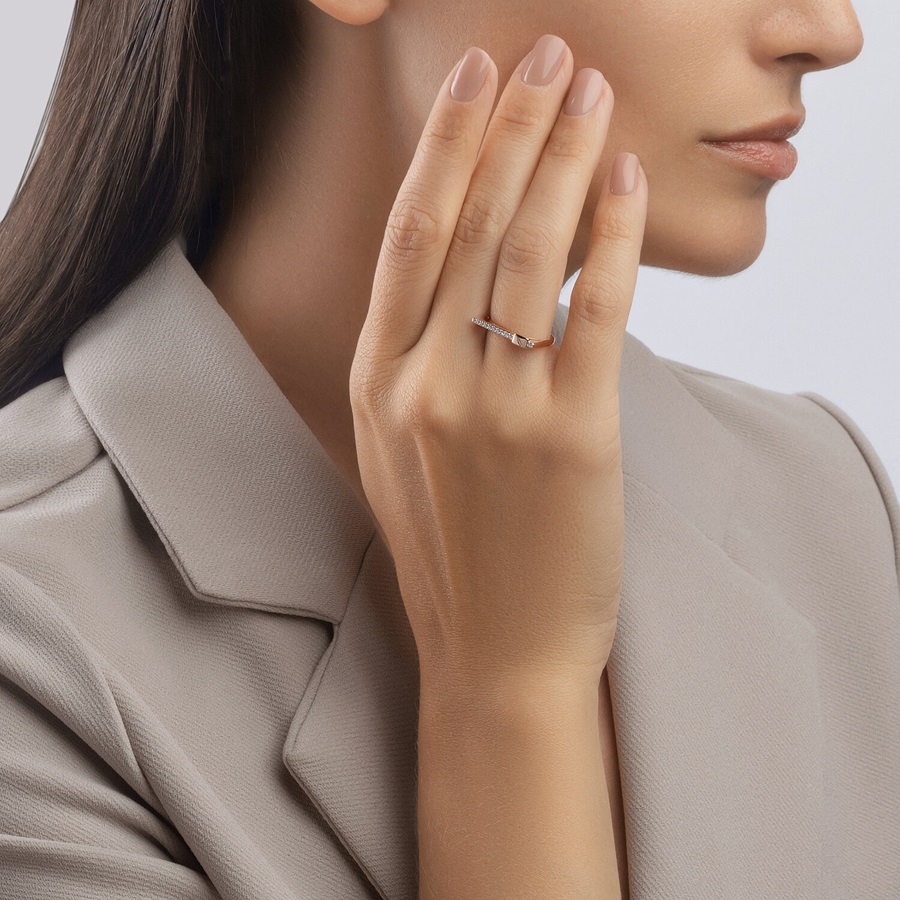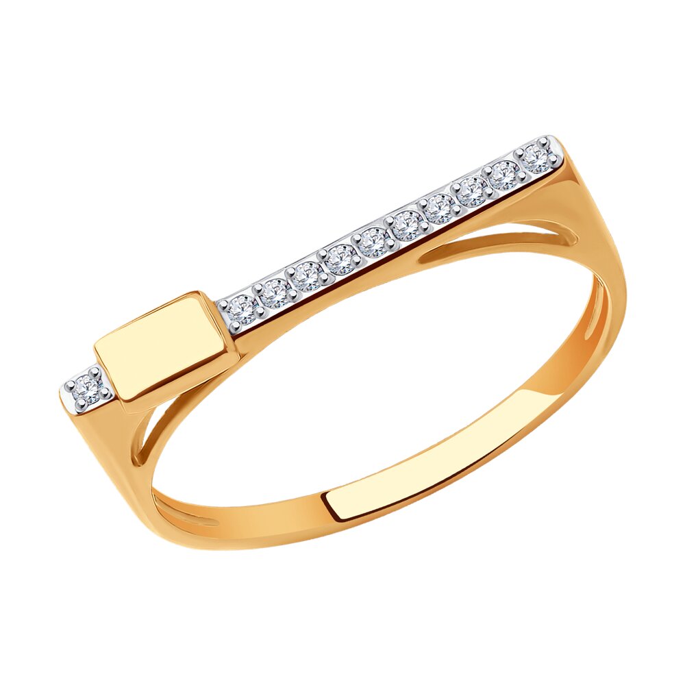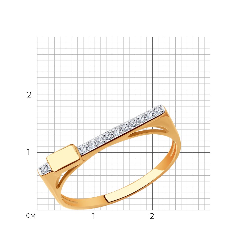 Стильное кольцо современного ювелирного дизайна с дорожкой искристых фианитов выполнено из красного золота 585 пробы. Оригинальное украшение с кристальным блеском камней поможет создать актуальный завершенный образ. Приобретайте ювелирное кольцо для себя или в подарок по привлекательной цене в магазинах Мир Золота.