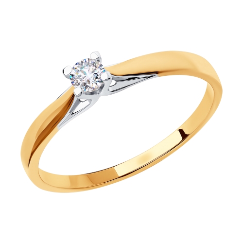 Классическое кольцо из красного золота 585 пробы с сияющим фианитом в изящной закрепке из белого золота будет прекрасным выбором для подарка, и подойдет в качестве помолвочного украшения. Кольцо отлично впишется в любые образы, и будет легко сочетаться с другими аксессуарами. Приобретайте кольцо по выгодным ценам в ювелирных магазинах Мир Золота.