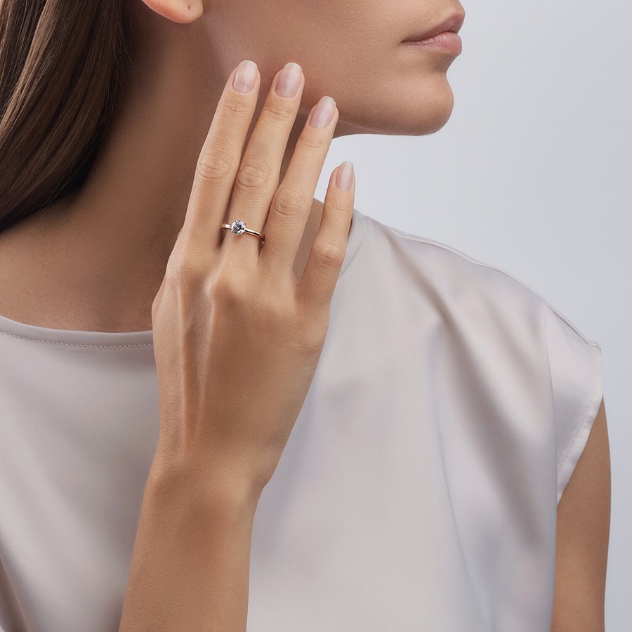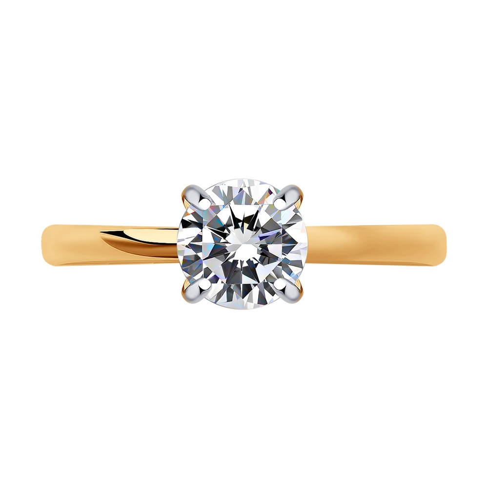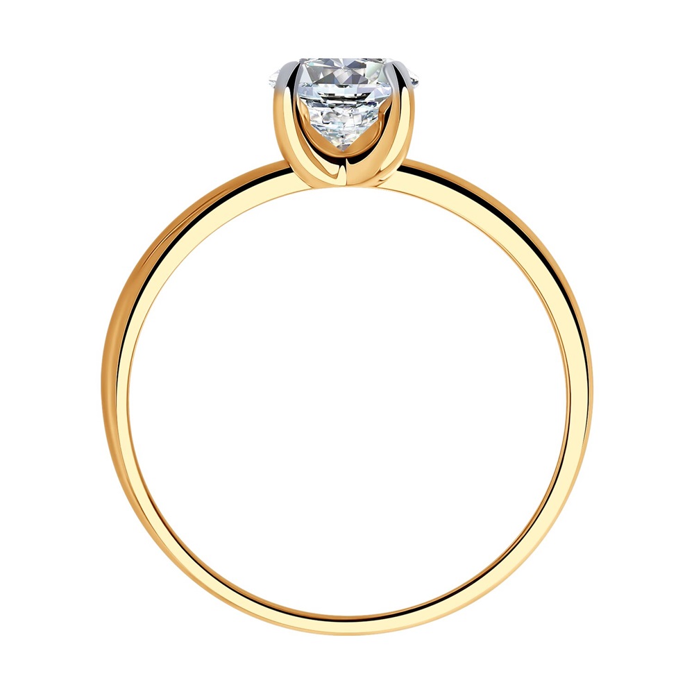 Кольцо классического ювелирного дизайна из красного золота 585 пробы декорировано великолепным сверкающим фианитом. Очаровательное украшение не оставит девушку равнодушной, и поможет создать привлекательный нежный образ. Приобретайте ювелирное украшение в подарок по выгодной цене в магазинах Мир Золота.