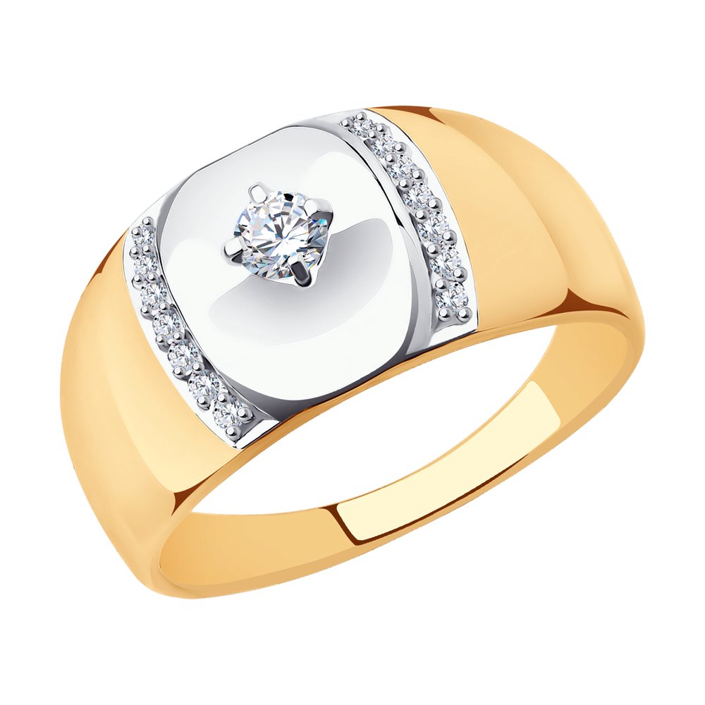 Элегантное кольцо из красного и белого золота 585 пробы с сияющим фианитами сделает образ более ярким и привлекательным. Украшение с контрастным сочетанием двух видов золота и кристальным блеском камней великолепно смотрится, и подчеркнет женственность обладательницы. Приобретайте ювелирное украшение в подарок по выгодной цене в магазинах Мир Золота.
