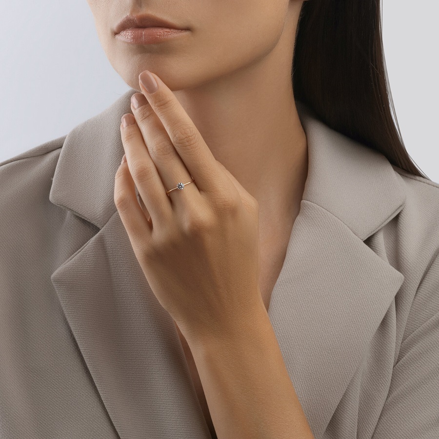 Кольцо из красного золота 585 пробы с сияющим прозрачным фианитом изящно дополнит повседневные, деловые или коктейльные образы. Утонченное кольцо с мерцающим блеском фианита станет идеальным подарком по особому случаю, и не оставит девушку равнодушной. Приобретайте ювелирное украшение по привлекательной цене в магазинах Мир Золота.