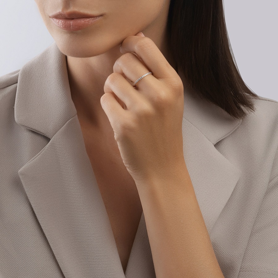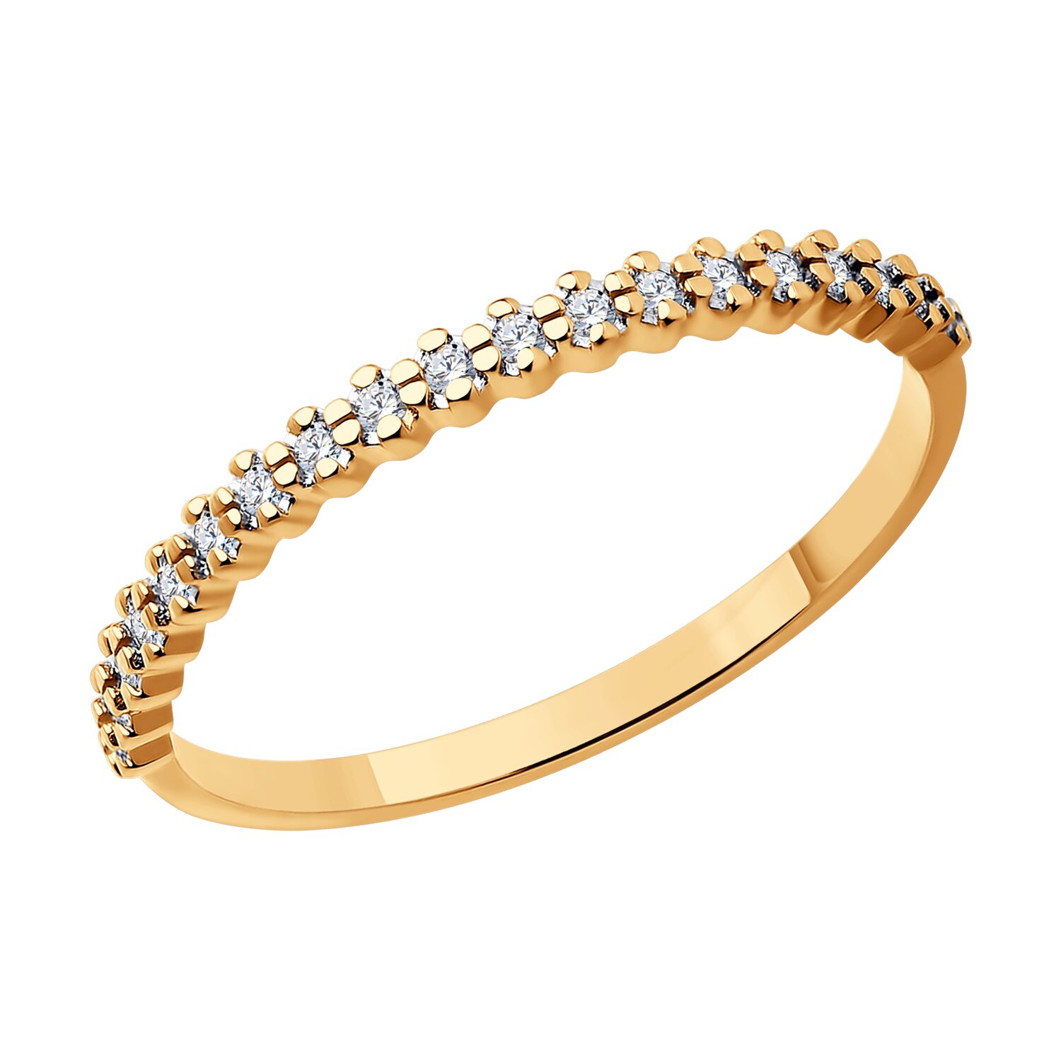 Утонченное кольцо из красного золота 585 пробы с дорожкой мерцающих фианитов выполнено в современном ювелирном дизайне. Кольцо изящно смотрится на руке, и будет прекрасным выбором для подарка, подчеркнув очарование владелицы. Приобретайте ювелирное украшение по привлекательной цене в магазинах Мир Золота.