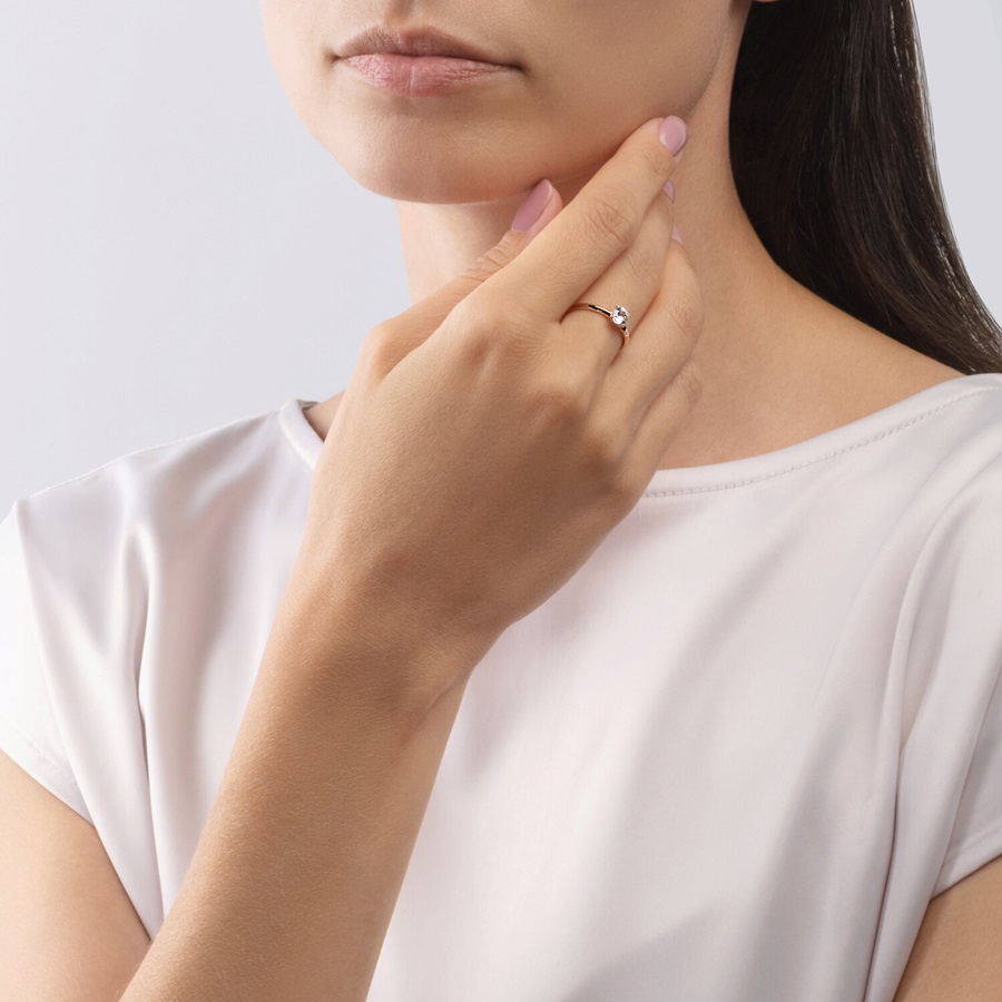 Кольцо из красного золота 585 пробы, декорированное сверкающим фианитом, станет привлекательным завершением повседневного образа. Кольцо с искристым блеском фианита изящно смотрится на руке, и будет легко сочетаться с другими аксессуарами из золота. Приобретайте ювелирное украшение по выгодной цене в магазинах Мир Золота.