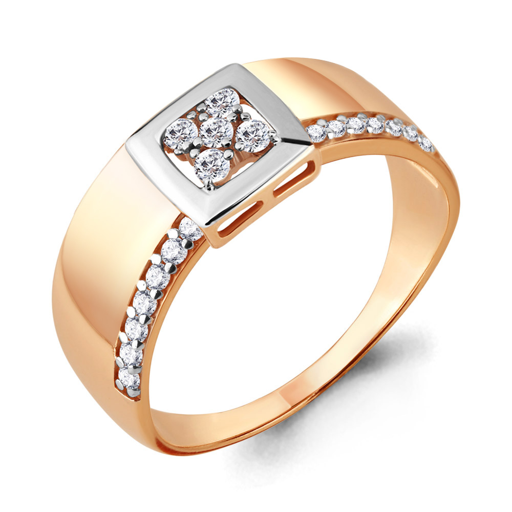 Кольцо из комбинированного золота 585 пробы, декорированное сверкающими фианитами, станет привлекательным завершением повседневного образа. Кольцо с дорожками прозрачных камней, подчеркнутых благородным блеском белого золота, элегантно смотрится, и легко комбинируется с другими аксессуарами. Приобретайте ювелирное украшение по выгодной цене в магазинах Мир Золота.