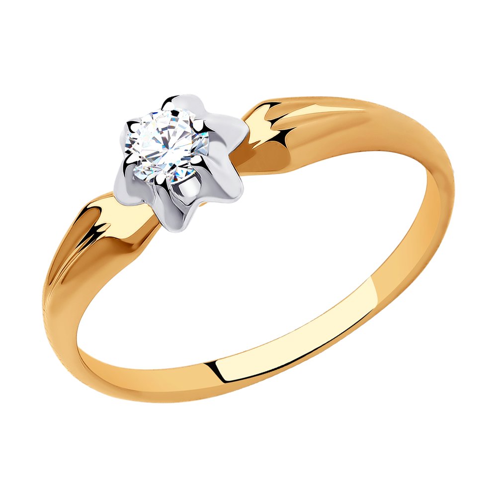 Восхитительное кольцо в лаконичном дизайне из красного золота с прозрачным солирующим фианитом в закрепке из белого золота - отражение безупречной ювелирной классики. Это нежное кольцо идеально подойдет для предложения руки и сердца, и сделает этот момент незабываемым в вашей жизни. Приобретайте кольцо по выгодным ценам в магазинах Мир Золота.