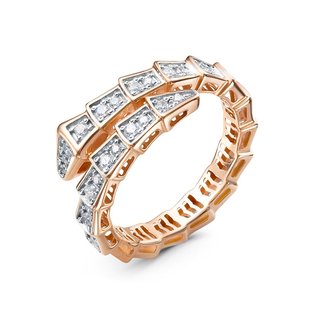 Эффектное дополнение стильного образа - оригинальное кольцо из красного золота высшей пробы в форме стилизованной змеи, усыпанное фианитами. Притягательные геометрические формы, блеск золота и сияние камней - интересное дизайнерское решение для блестящего впечатления. Купите интересное кольцо по выгодной цене в магазинах Мир Золота.