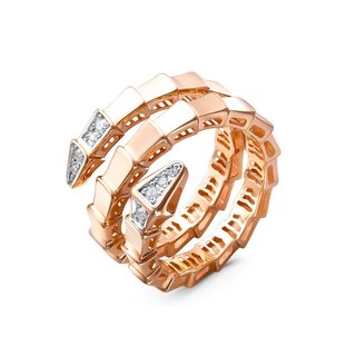 Объемное женское кольцо из красного золота 585 пробы напоминает подвижную змею, которая создает образ таинственности и загадочности. Безупречные линии драгоценного металла, декорированные прозрачными фианитами, следуют трендовым преображениям классических украшений с учетом современной моды. Купите эффектное кольцо по лучшей цене в магазинах Мир Золота.