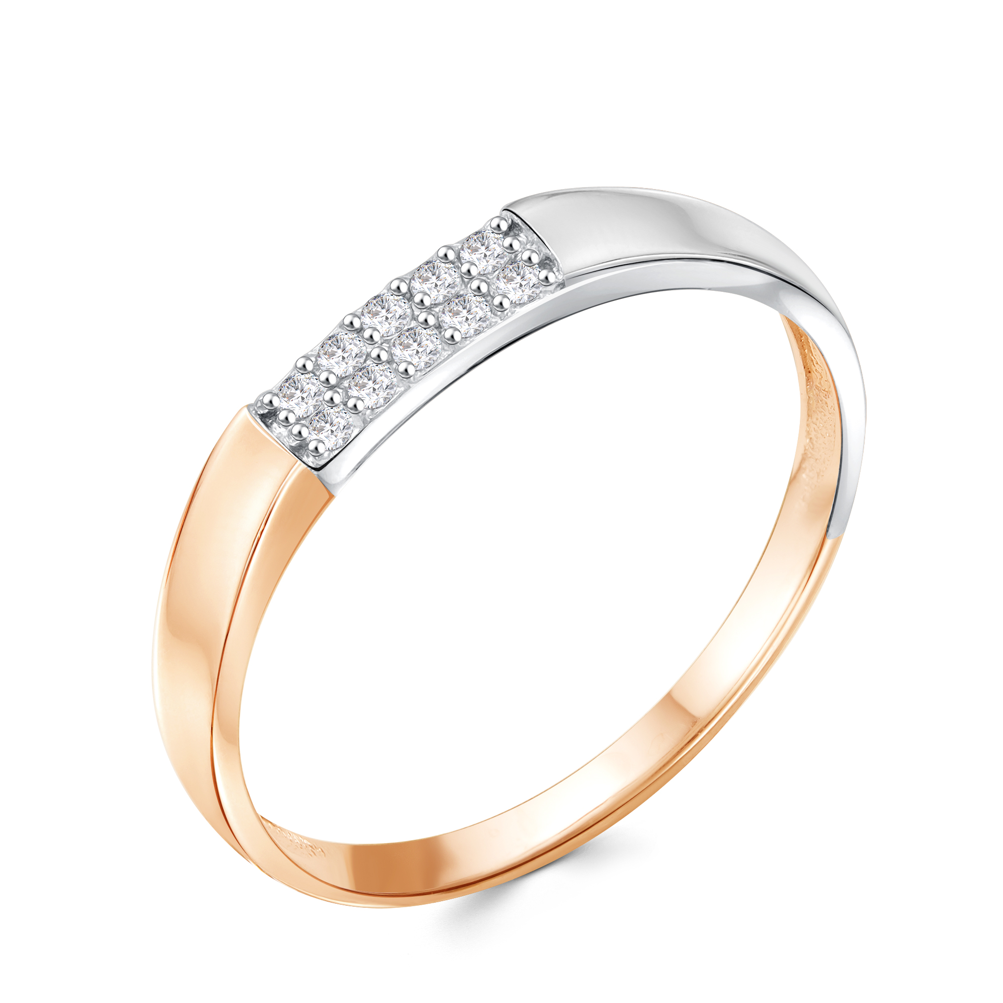 Кольцо из комбинированного золота с фианитами