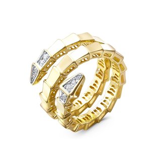 —Кольцо из желтого золота с фианитами в форме змеи