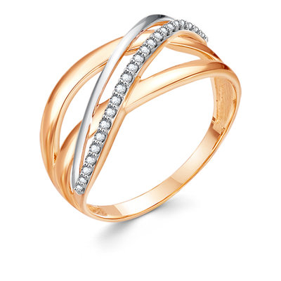 Воздушное кольцо из красного золота 585 пробы с прозрачными фианитами поражает своей легкостью и динамичностью. Изящные линии белого и красного металла и переливы камней создают ощущение постоянного движения, добавляя образу энергии и современности.