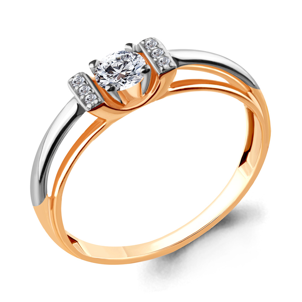 Красивое кольцо из красного золота с фианитами и вставками белого золота сочетает в себе элегантность и роскошь. Центральные фианиты, окруженные вставками из белого золота, создают яркий контраст и привлекают внимание своим блеском. Теплые оттенки красного золота подчеркивают изысканность дизайна, а белые акценты добавляют утонченности и современности. Это кольцо станет великолепным выбором для тех, кто ценит оригинальные и стильные украшения.