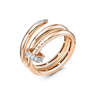Эффектное кольцо из нежного красного золота украсит любой женский образ, подчеркивая красоту и индивидуальность обладательницы. Фианиты аккуратно закреплены в оригинальной технике, повторяющей знаменитый стиль Cartier. Лаконичная форма кольца и минимализм дизайна делают аксессуар идеальным выбором для повседневного ношения и торжественных мероприятий.