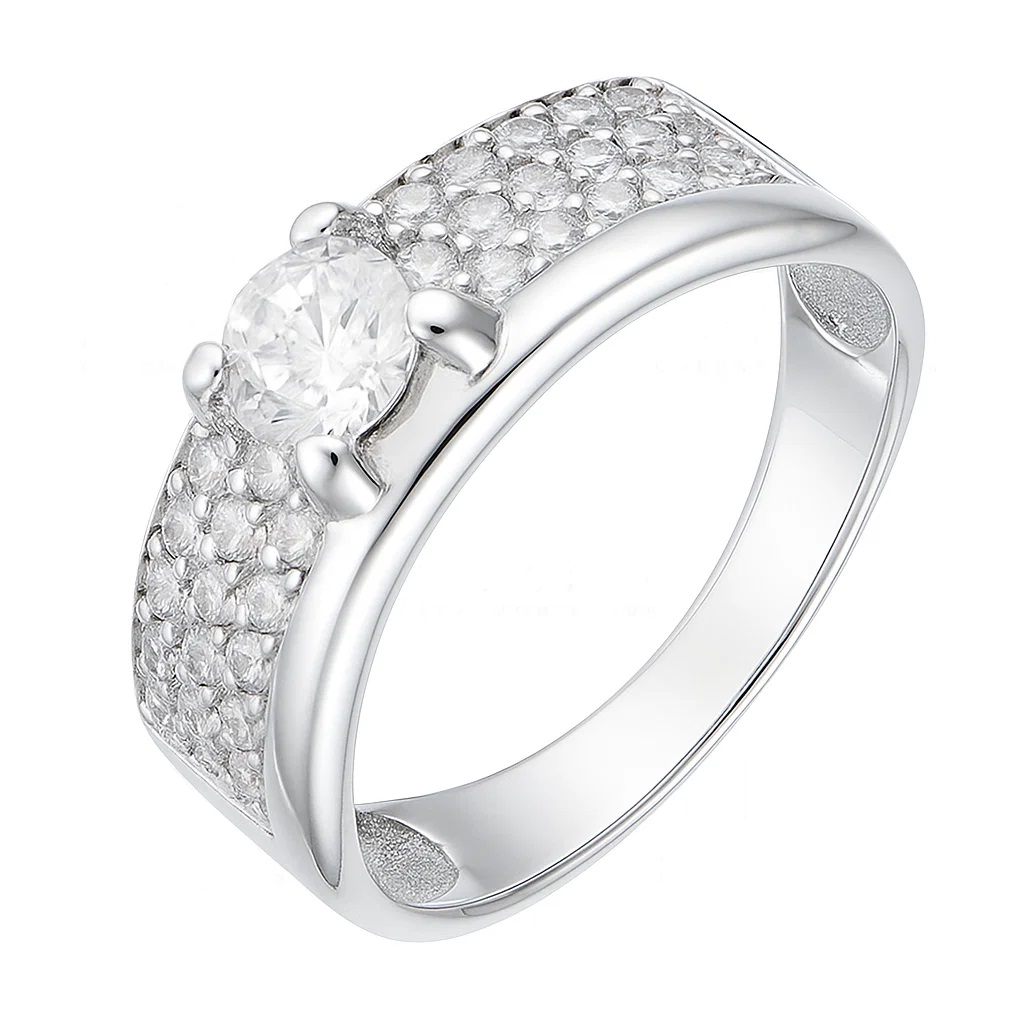 Кольцо из белого золота 585 пробы с россыпью сияющих фианитов сделает женский образ более ярким и привлекательным. Блистательное украшение с кристальным сиянием камней будет прекрасно сочетаться с повседневными и вечерними нарядами, и подчеркнет безупречный вкус обладательницы. Приобретайте ювелирное украшение по выгодной цене в магазинах Мир Золота.