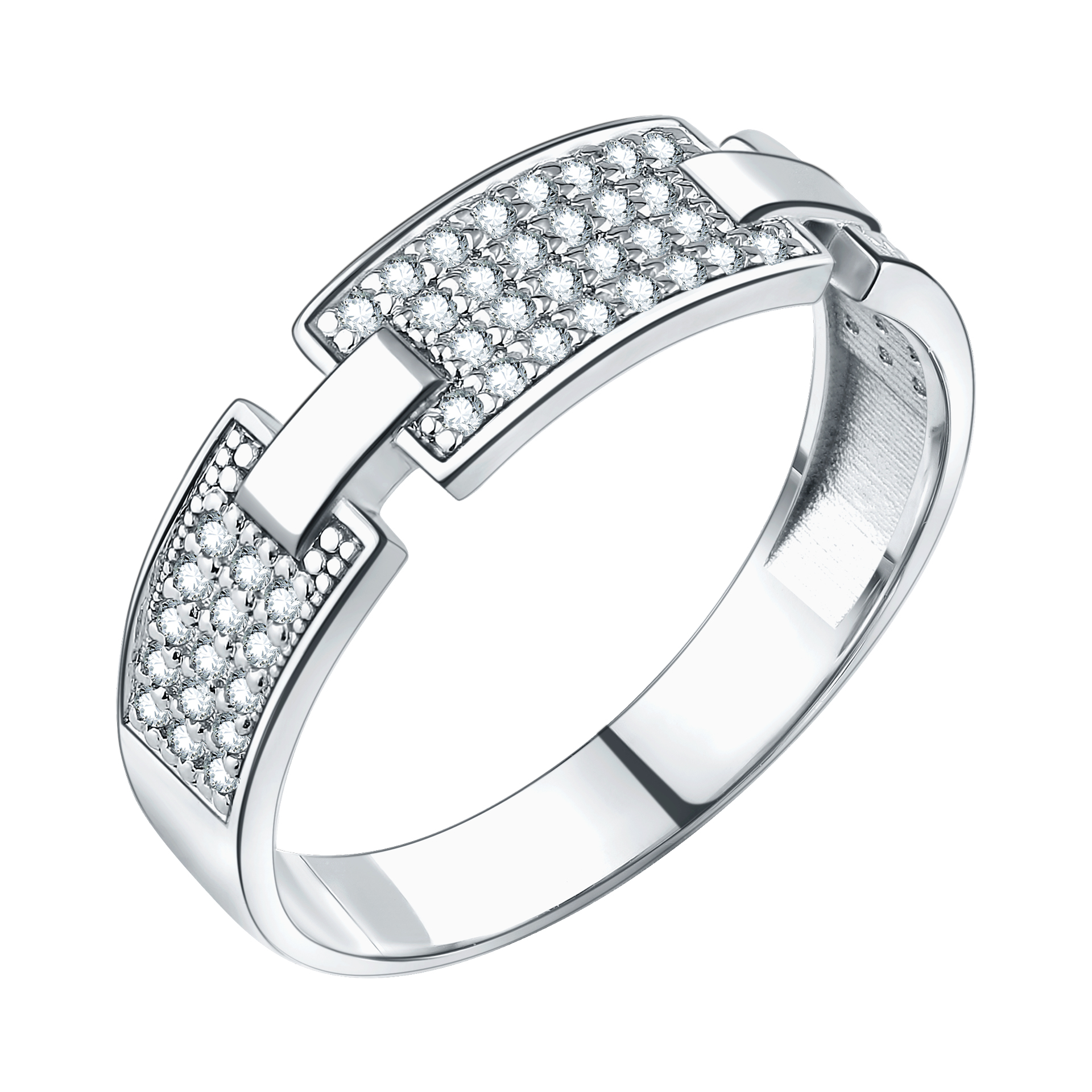 Стильное женское кольцо с прямоугольными вставками из родированного серебра 925 пробы. Кольцо из серебра станет отличным дополнением к любому повседневному и вечернему образу. Ювелирное украшение - замечательный подарок любимой девушке, маме. Кольцо станет отличным дополнением к комплекту из серебряных украшений. Изделие будет прекрасно смотреться на руке девушки, подчеркивая её красоту и изящество.