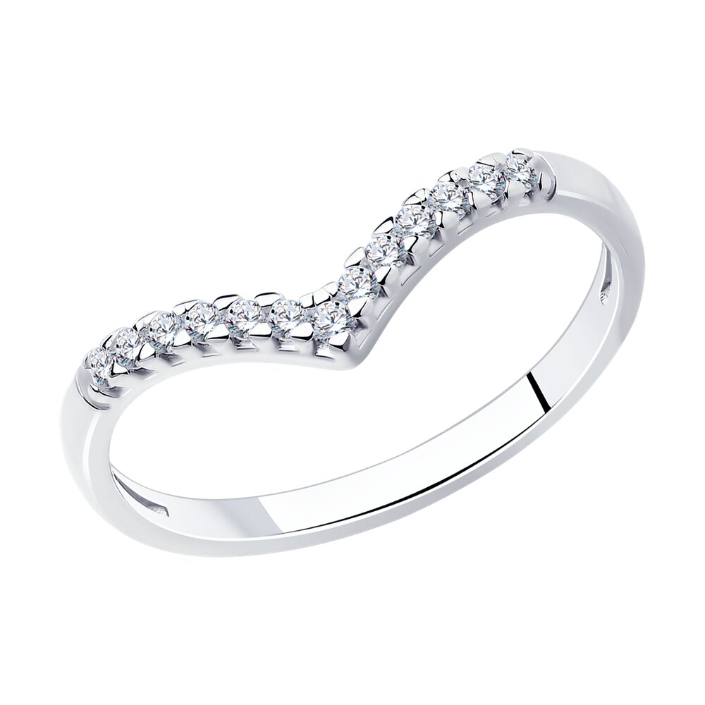 Изысканное серебряное кольцо с фантазийным дизайном привлекает внимание своей утончённой элегантностью. Вдоль изящно изогнутой центральной линии кольца сияют 13 фианитов, создавая эффект мерцающей дорожки. Такое украшение станет идеальным дополнением к любому образу, подчёркивая индивидуальность, вкус и неповторимый стиль своей обладательницы.