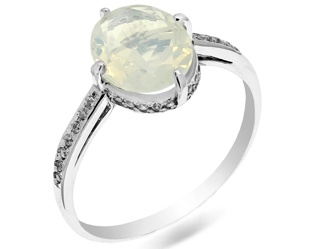 Кольцо из серебра с лунным камнем и цирконами