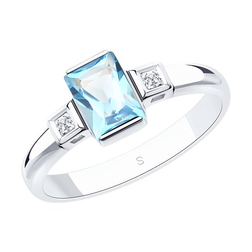 Стильное кольцо из белого золота 585 пробы с выразительным топазом и квадратными фианитами выполнено в современном дизайне. Правильные строгие формы с изумительным сиянием камней на фоне холодного оттенка золота - актуальное украшение завораживает взгляд, и отлично дополнит элегантные образы современной леди. Приобретайте ювелирное украшение по выгодной цене в магазинах Мир Золота.