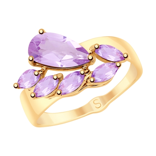 Превосходное кольцо из красного золота 585 пробы, украшенное эффектной композицией из натуральных аметистов, идеально дополнит любой выбранный образ. Изысканная огранка усиливает блеск камней, раскрывая их природную красоту. Восхитительное украшение отлично подчеркнет индивидуальность и безупречность стиля владелицы. Приобретайте ювелирное украшение выгодно в магазинах Мир Золота.