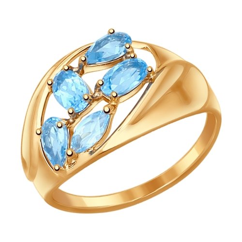 Женское кольцо из красного золота 585 пробы декорировано вставками с натуральными топазами различной формы огранки. Привлекательный дизайн с сочетанием драгоценного блеска золота и нежного сияния голубых камней идеально дополнит неповторимый женственный образ обладательницы. Приобретайте украшение с топазами по выгодной цене в магазинах Мир Золота.
