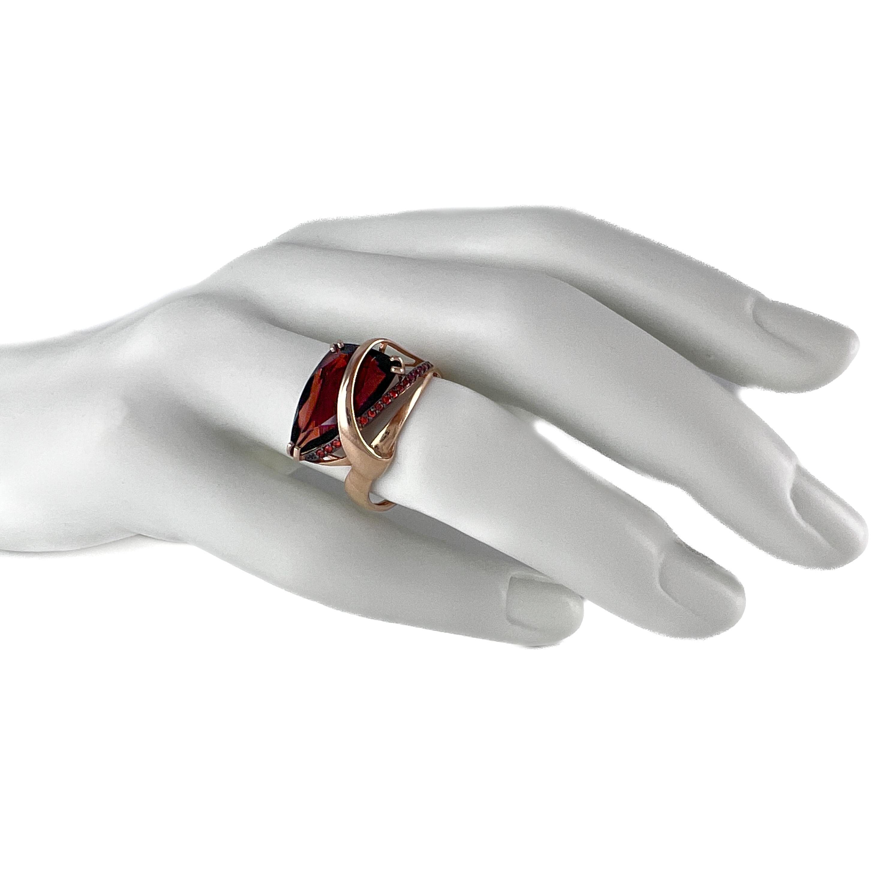 Драгоценное кольцо из красного золота, украшенное фианитами и натуральным гранатом, подскажет короткий путь к изысканному образу. Безупречные линии золота следуют трендовым преображениям классических украшений с учетом современной моды. Оригинальный дизайн предлагает новый уровень гармонии, а уникальный стиль - возможность добавить к образу по-настоящему яркую деталь. Украшение представлено ювелирным брендом Александра.