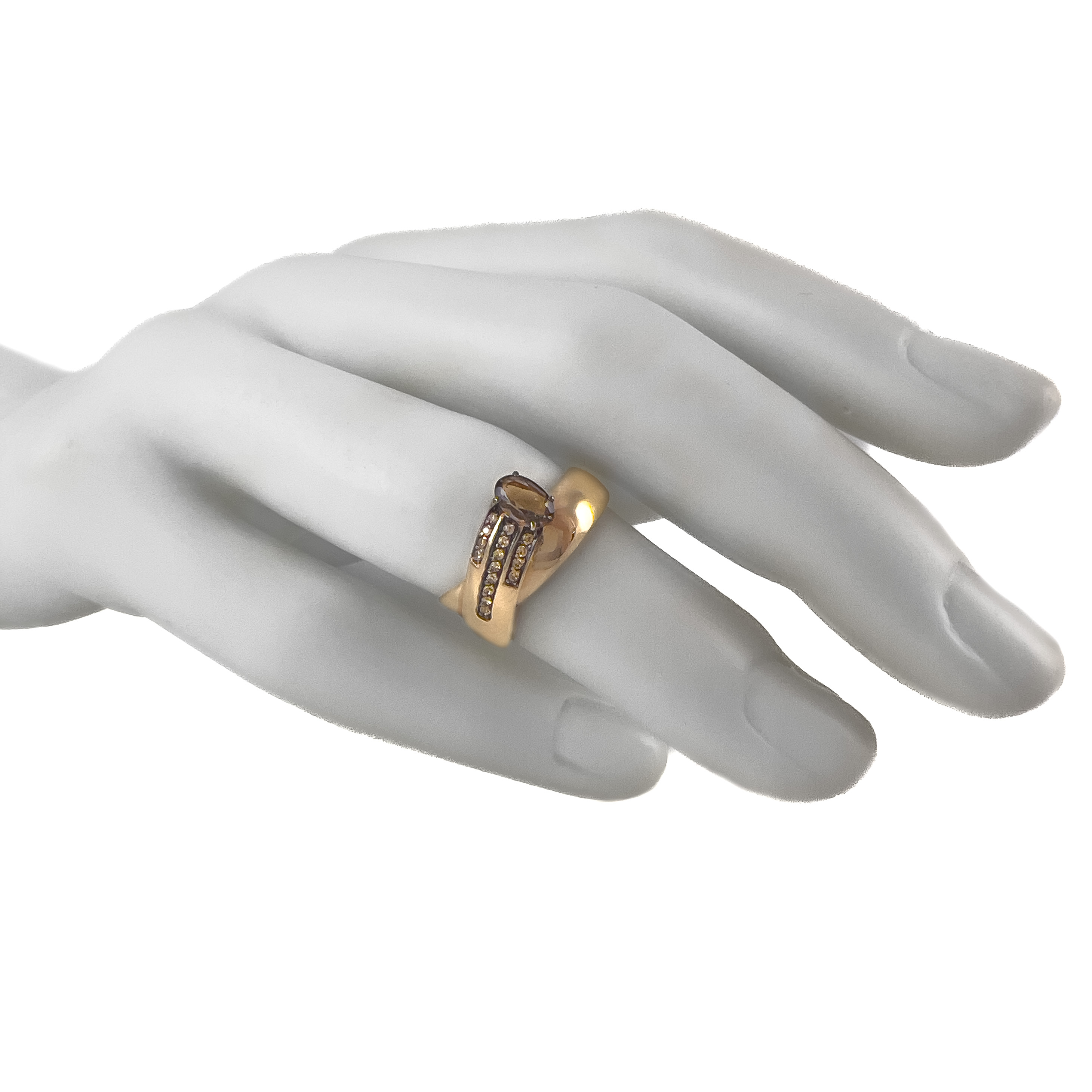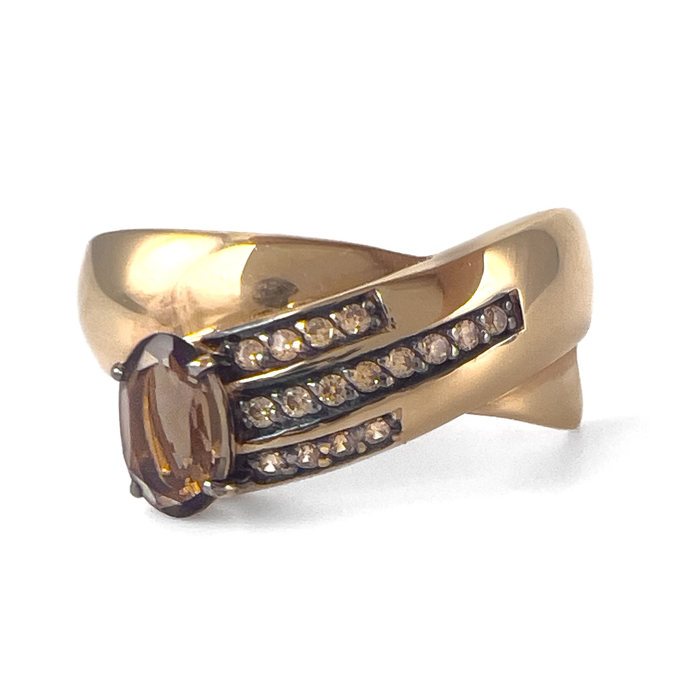 Элегантное кольцо из красного золота 585 пробы декорировано грраухтопазом овальной огранки и дорожками из кристальных фианитов. Замечательное украшение с притягательным сиянием камней позволит создать безупречный образ, и сделает его неповторимым и привлекательным. Приобретайте кольцо по выгодным ценам в магазинах Мир Золота.