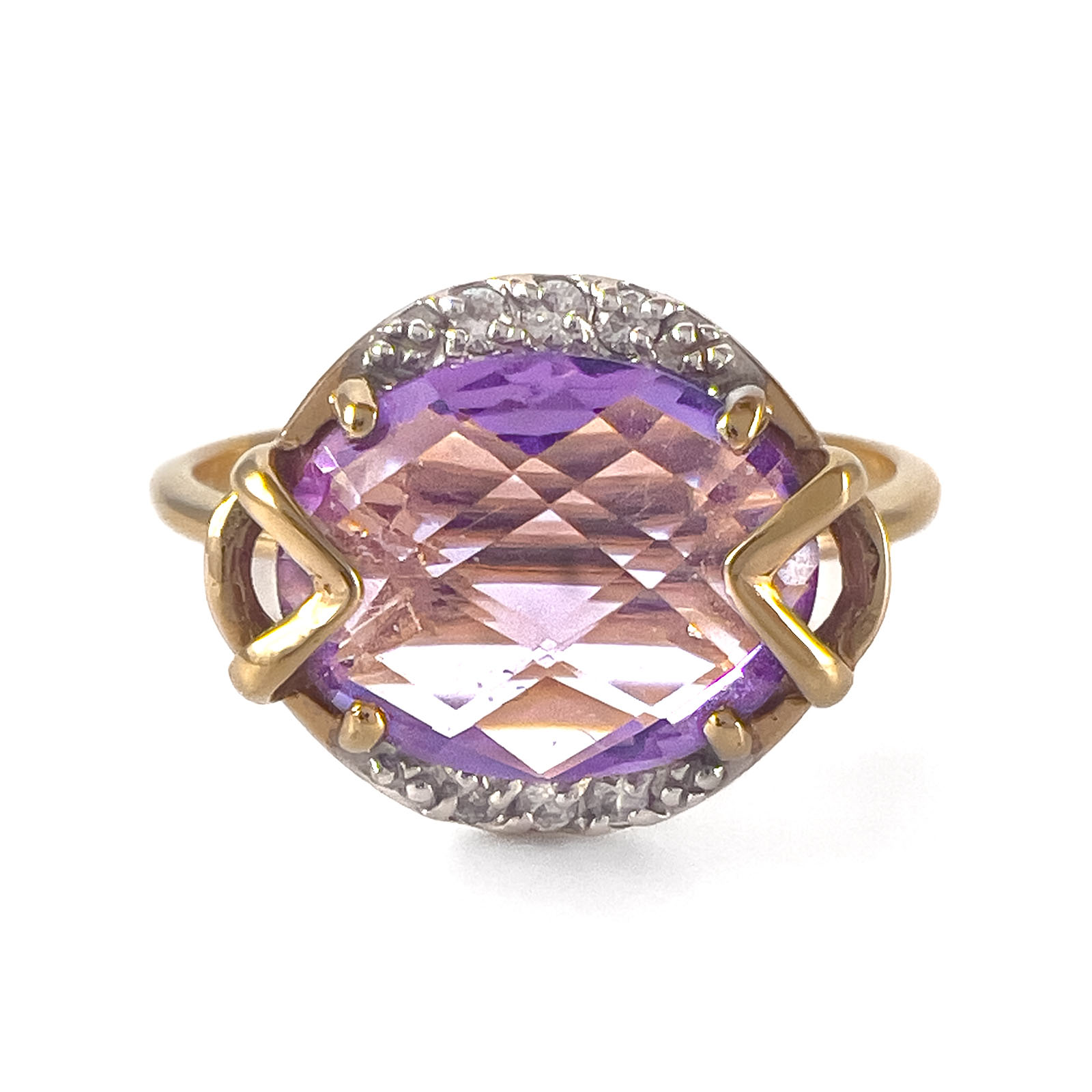 —Кольцо из красного золота 585 пробы с аметистом и фианитами