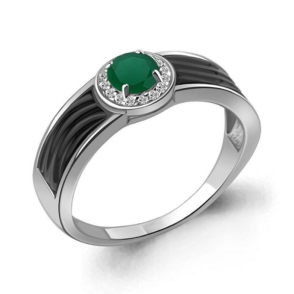 Кольцо из серебра с агатом, фианитами и керамическим покрытием