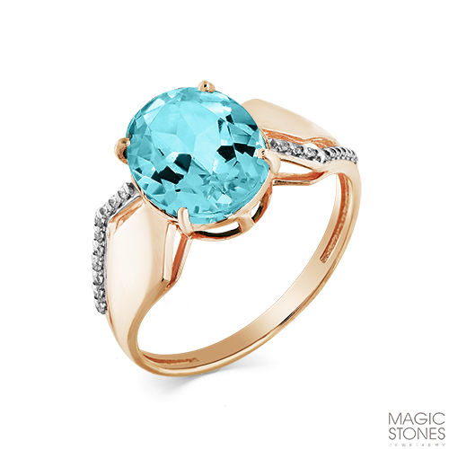 Кольцо из красного золота с аквамарином и фианитами