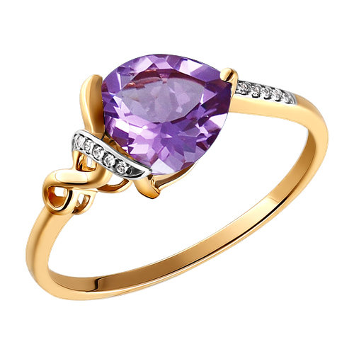 Изящное кольцо в романтичном стиле, выполнено из красного золота 585 пробы, украшено аметистом в форме сердца и круглыми фианитами. Очаровательное украшение с переливчатым блеском камней превосходно подчеркнет нежный женственный образ, и будет идеальным подарком по любому поводу. Приобретайте украшение по выгодным ценам в магазинах Мир Золота.