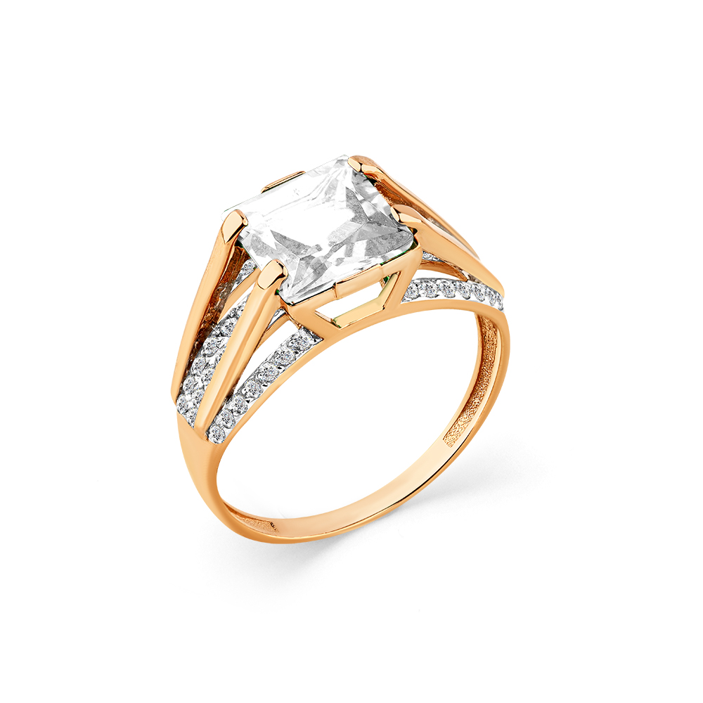 —Кольцо из красного золота с горным хрусталём и фианитами