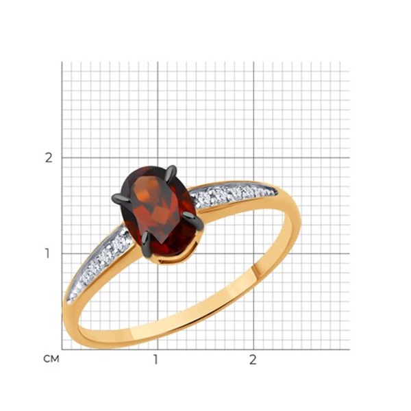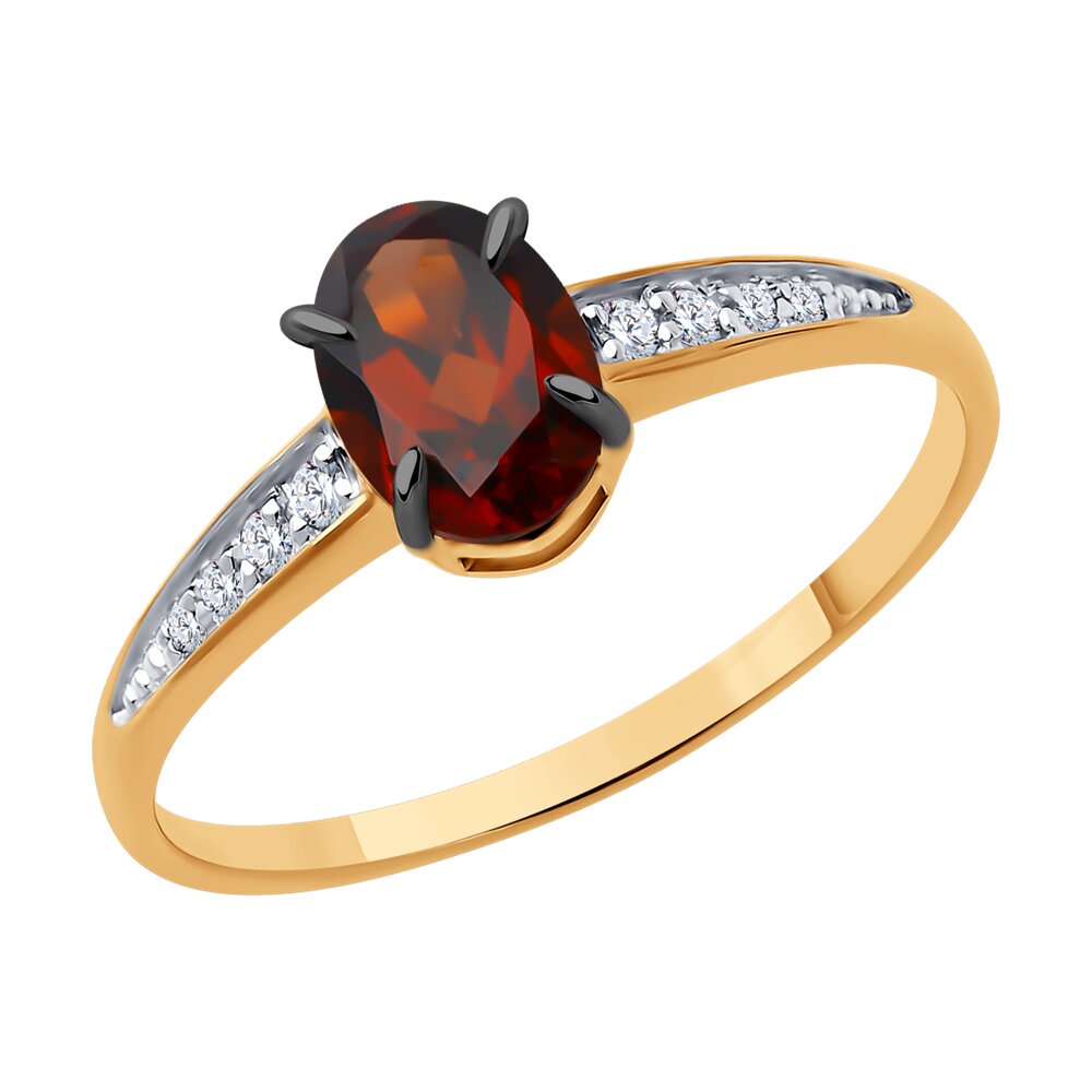 Кольцо из красного золота с гранатом и фианитами