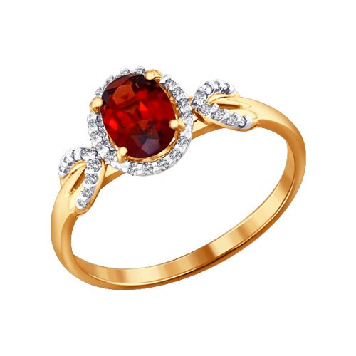 Кольцо из красного золота с гранатом и фианитами