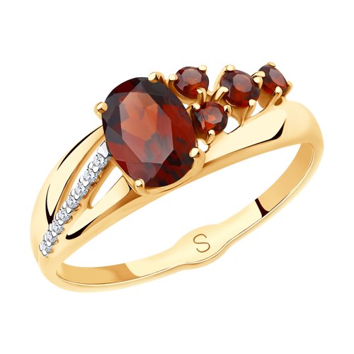 Изумительное кольцо из красного золота 585 пробы с привлекательным блеском гранатов и фианитов эффектно дополнит женственный образ стильным выразительным акцентом. Замечательное кольцо отлично украсит как базовые повседневные, так и яркие праздничные наряды, и будет достойным подарком для любой женщины. Приобретайте ювелирное украшение по выгодным ценам в магазинах Мир Золота.
