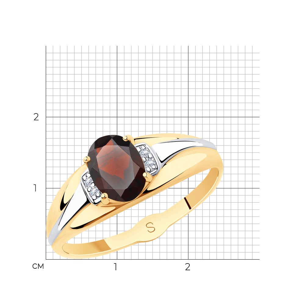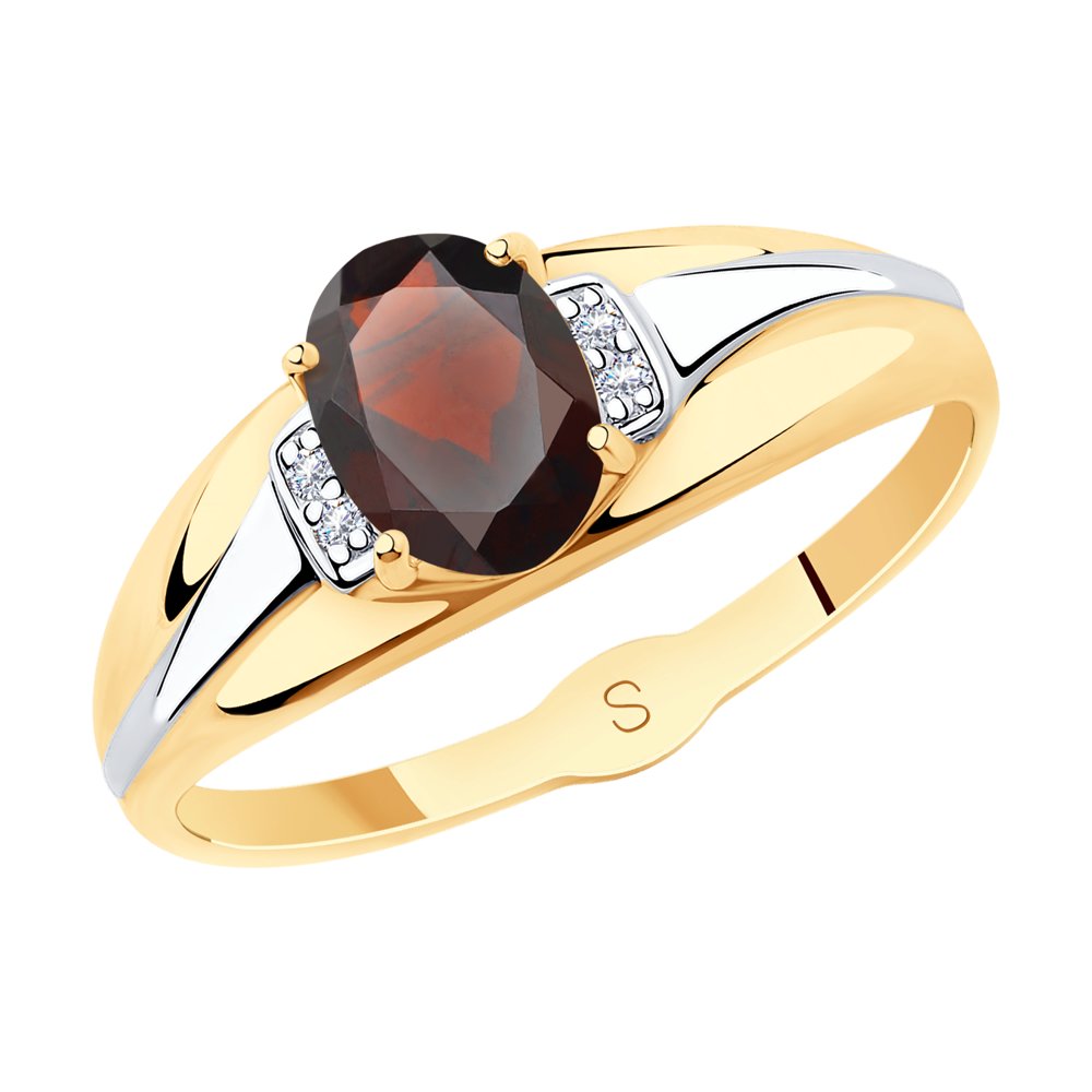 Классический дизайн кольца с гранатом и фианитами, из красного золота 585 пробы, отлично дополнит элегантный женский образ. Драгоценный металл и декоративные вставки с кристальным блеском прозрачных фианитов подчеркивают яркое сияние граната, раскрывая его красоту и очарование. Приобретайте ювелирное украшение по выгодным ценам в магазинах Мир Золота.