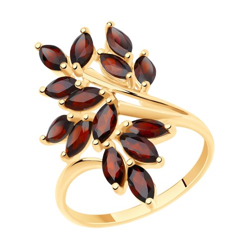 Восхитительное кольцо выполнено в необыкновенном дизайне из красного золота 585 пробы и украшено россыпью гранатов. Бесподобные гранаты изысканной огранки завораживают своей красотой и переливающимся насыщенным сиянием, украшение очень эффектно выглядит на руке, и не оставит женщину равнодушной. Приобретайте ювелирное украшение в подарок своим любимым по выгодной цене в магазинах Мир Золота.