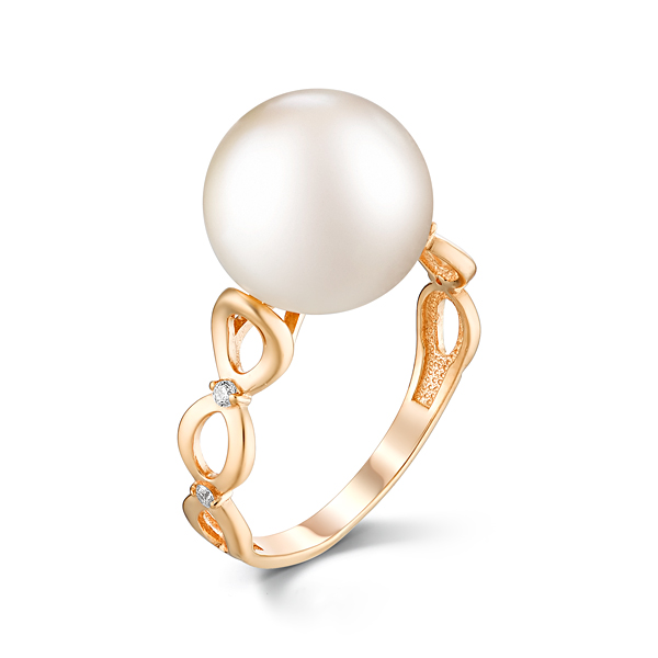 Кольцо из красного золота с жемчугом и фианитами
