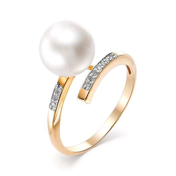 Кольцо из красного золота с жемчугом и фианитами