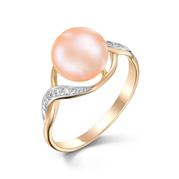 Кольцо из красного золота с жемчугом и фианитами
